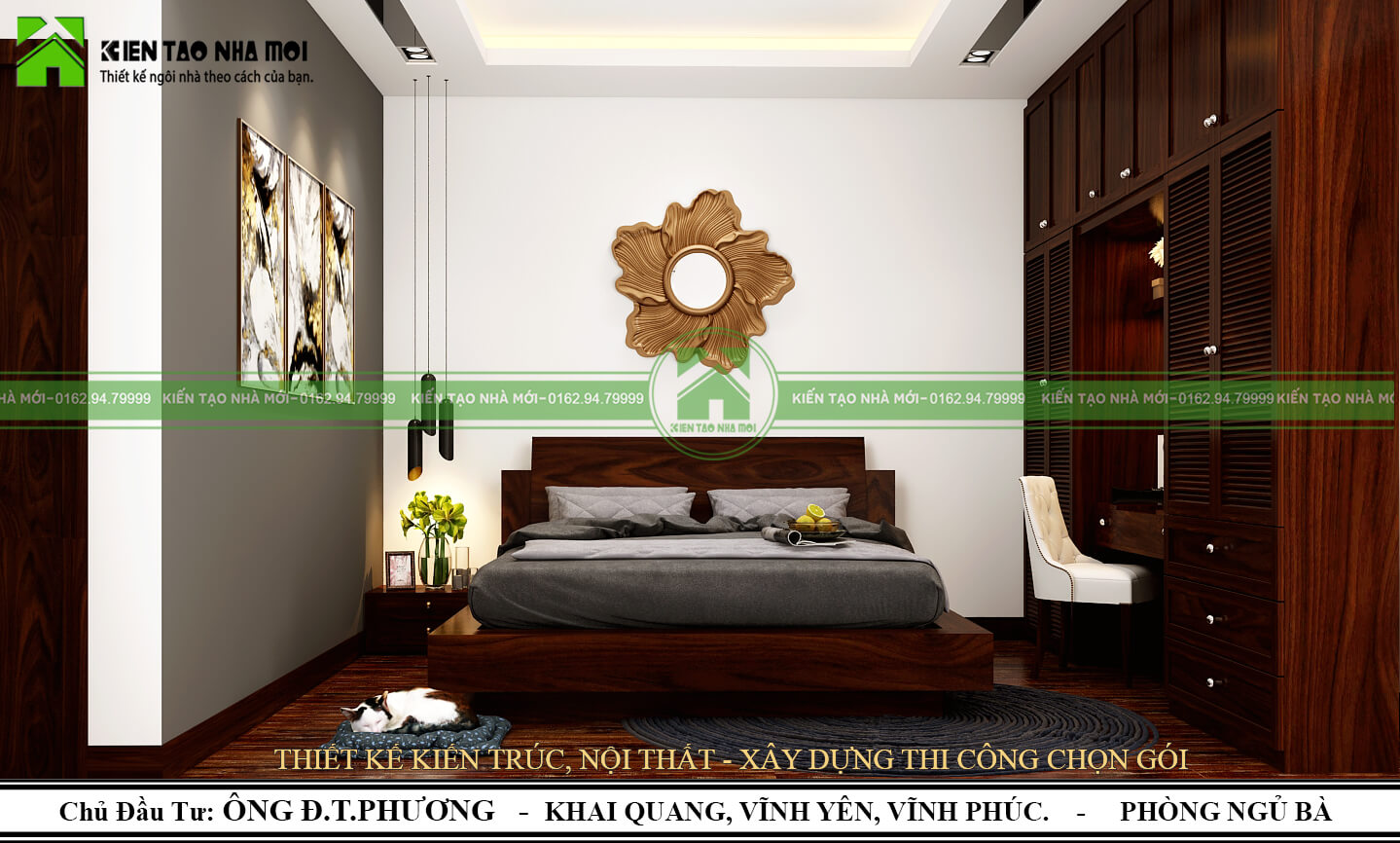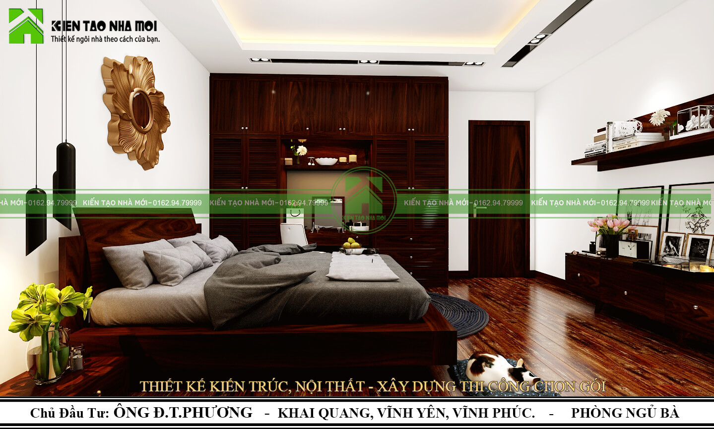 Hệ tủ quần áo được bố trí kết hợp bàn trang điểm rất được gia chủ hài lòng. Đây chính là yếu tố Độc-Đẹp mà các KTS Kiến Tạo Nhà Mới luôn muốn hướng đến.