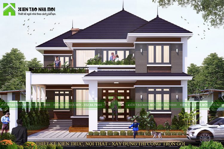 Với mẫu biệt thự 2 tầng hiện đại mái thái đẹp ấn tượng tại Hà Nam mà chúng tôi giới thiệu sau đây cũng là điển hình cho xu hướng thiết kế này. Kiến Tạo Nhà Mới tự hào sở hữu cho mình bộ sưu tập thiết kế biệt thự hiện đại quy mô cả về số lượng và chất lượng được chủ đầu tư, đối tác và đồng nghiệp trên cả nước đánh giá cao. Trong số đó, ngày hôm nay chúng tôi muốn giới thiệu tới các quý bạn đọc và các khách hàng một mẫu thiết kế biệt thự 2 tầng phong cách hiện đại với vẻ đẹp duyên dáng mà thời thượng, làm say lòng không chỉ chủ đầu tư mà bất cứ vị khách nào cũng phải trầm trồ thán phục.