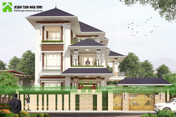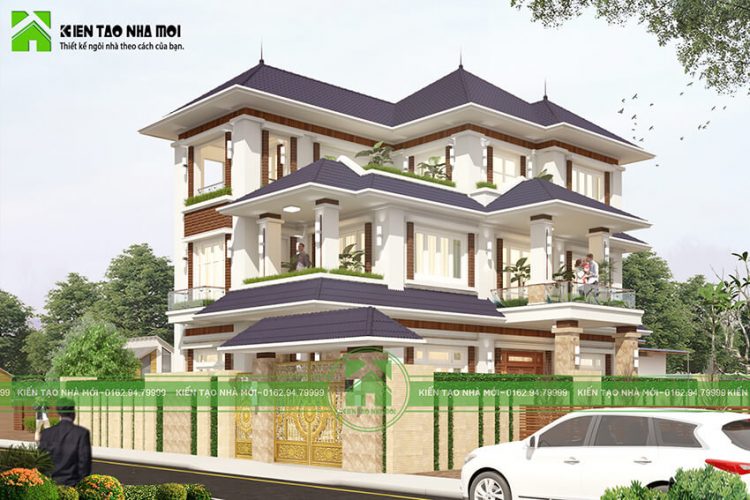 Với mẫu biệt thự 3 tầng hiện đại mái thái đẹp ấn tượng tại Nam Định mà chúng tôi giới thiệu sau đây cũng là điển hình cho xu hướng thiết kế này. Kiến Tạo Nhà Mới tự hào sở hữu cho mình bộ sưu tập thiết kế biệt thự hiện đại quy mô cả về số lượng và chất lượng được chủ đầu tư, đối tác và đồng nghiệp trên cả nước đánh giá cao. Trong số đó, ngày hôm nay chúng tôi muốn giới thiệu tới các quý bạn đọc và các khách hàng một mẫu thiết kế biệt thự 3 tầng phong cách hiện đại với vẻ đẹp duyên dáng mà thời thượng, làm say lòng không chỉ chủ đầu tư mà bất cứ vị khách nào cũng phải trầm trồ thán phục.