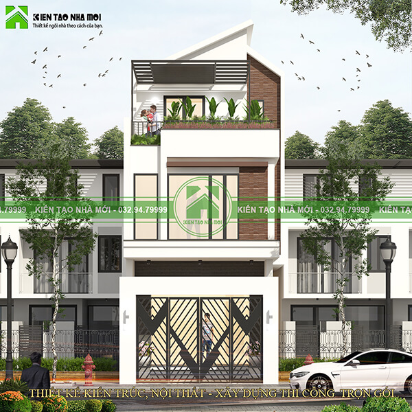 Ở mẫu nhà phố ấn tượng này chúng ta có thể thấy được sự phá cách trong kiến trúc mang những nét ấn tượng, độc đáo, sự thiết kế sáng tạo và phóng khoáng của kiến trúc sư theo phong cách hiện đại làm điểm nhấn tạo cho công trình có bề ngoài hết sức đặc sắc.